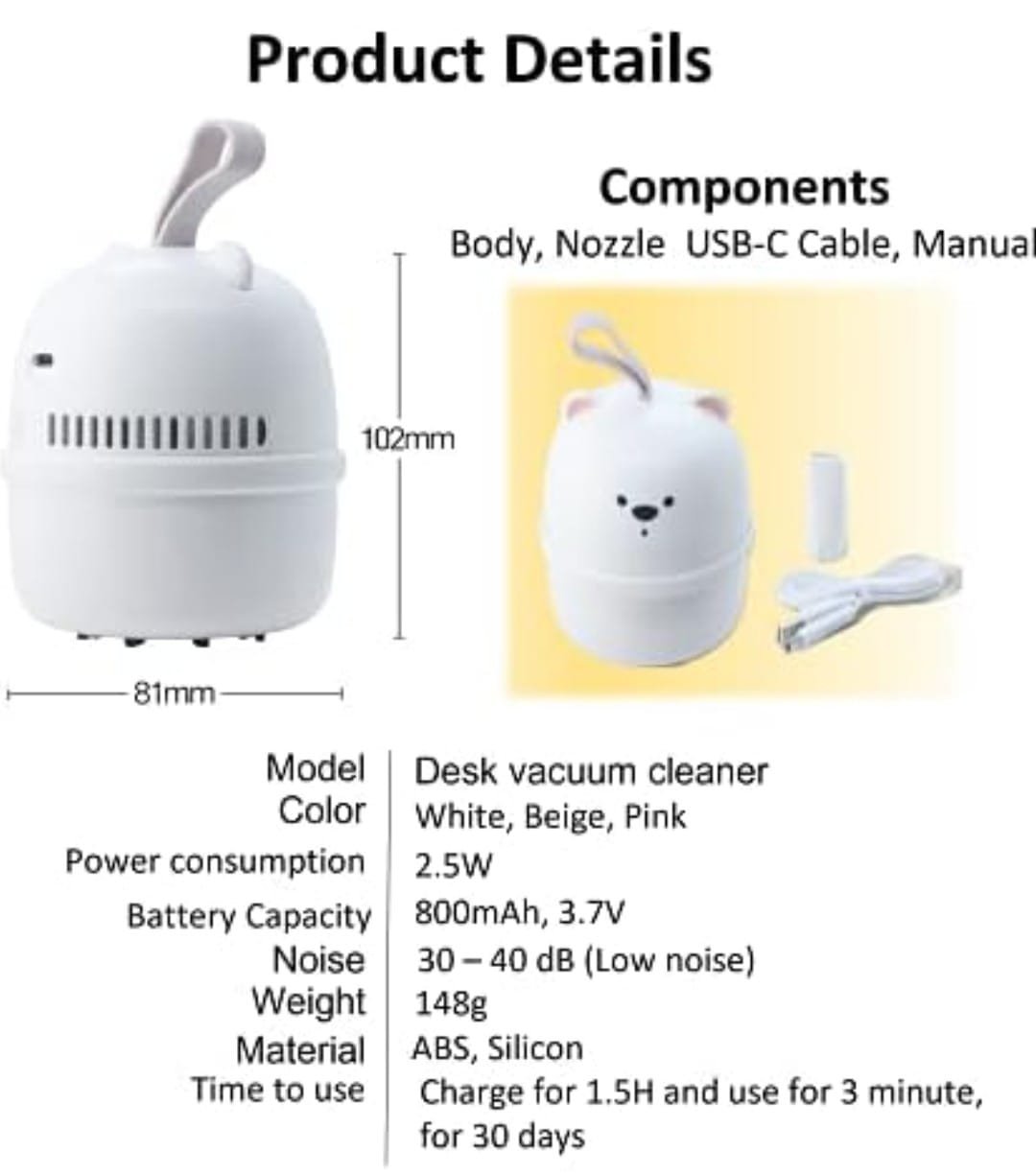 UNINTERRUPTED POWER: Stay Charged and Ready! Our mini vacuum cleaner is equipped with an 800mAh large-capacity battery and a universal Type-C charging interface, ensuring uninterrupted cleaning power whenever you need it.