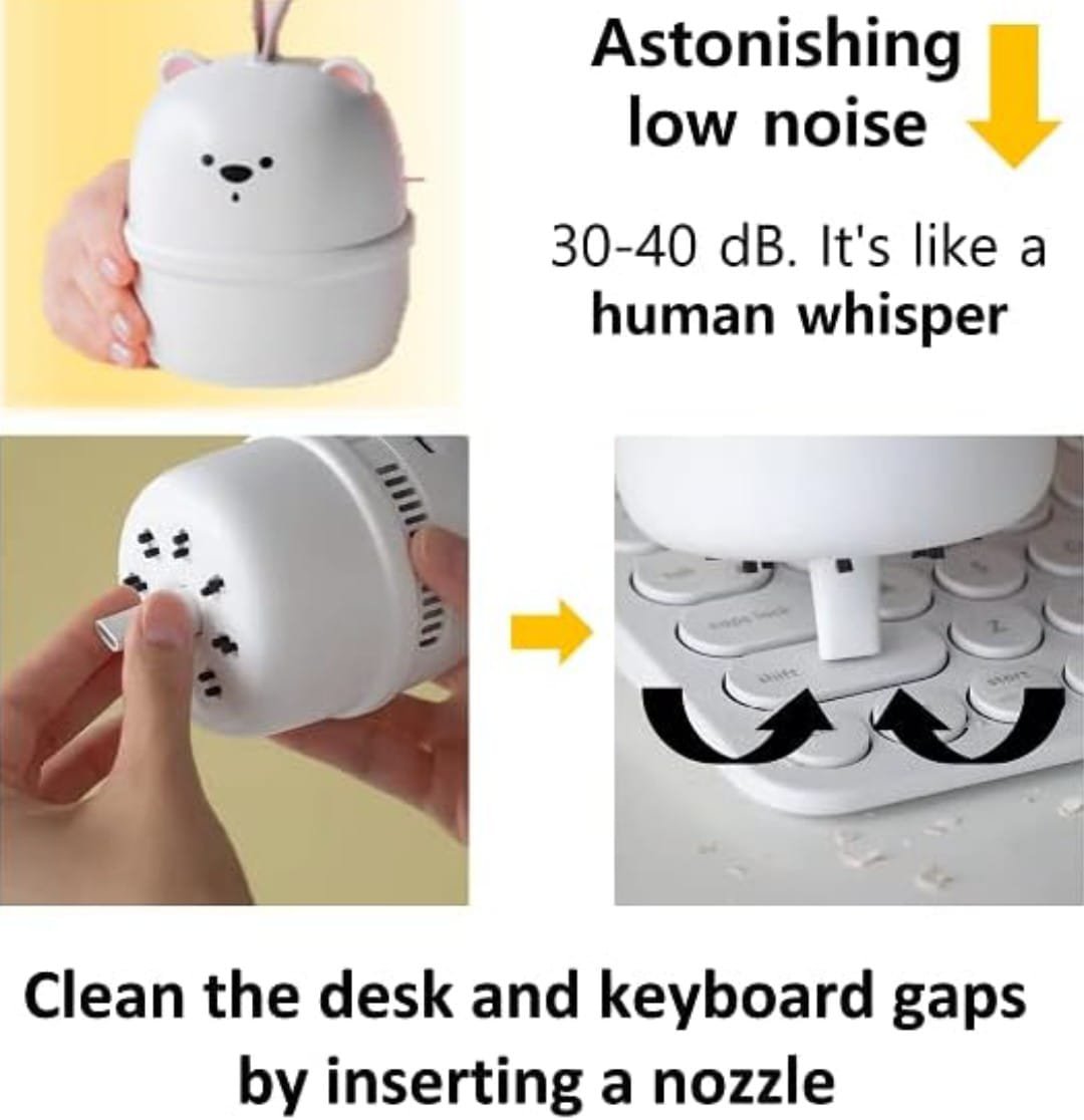 COMPACT AND ADORABLE: Your ideal Desktop Companion! This small wonder is your go-to assistant for clearings desktop dander and keyboard crumbs. Its compact, cute design fits in the palm of your hand for effortless control