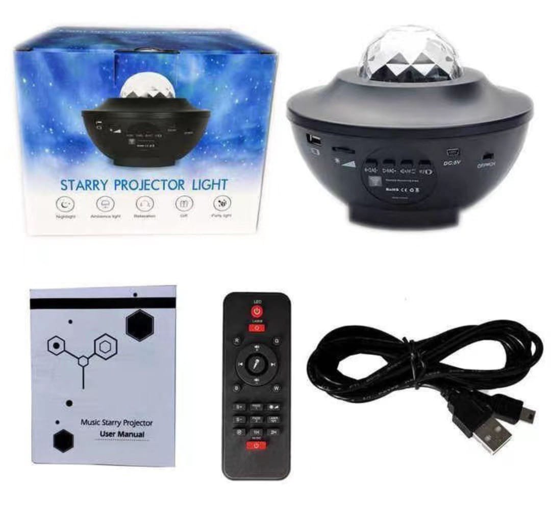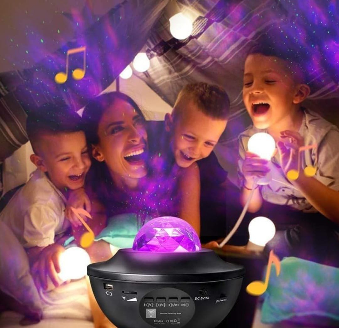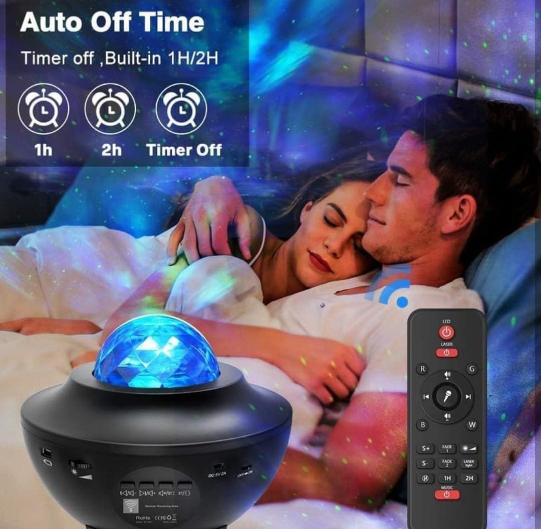 Multifunctional galaxy projector with star, nebula, and ocean wave effects. Features Bluetooth music playback, remote control, and adjustable light modes—perfect for bedrooms, parties, or relaxation.